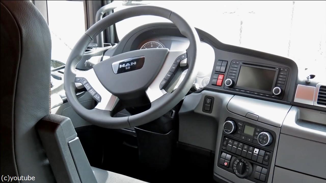 コックピットは、トラックの質実剛健な作りながら、クルーズコントロールやオーディオを装備していて、快適なドライブが楽しめそう。