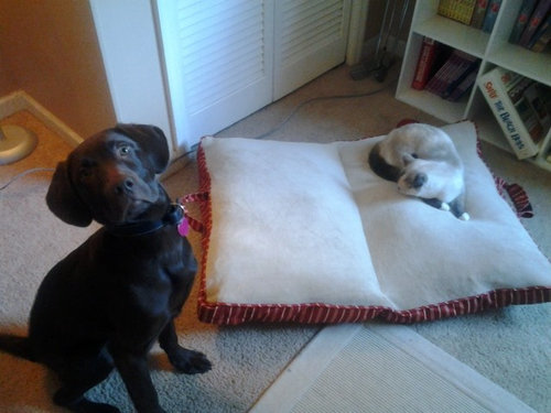犬と猫が同居すると、犬のほうがはるかに体格がよくても、なぜか猫のほうがわがもの顔でスペースを占有していることが多いものです。