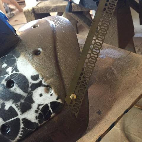 こちらは背中側。塗装した上にアップリケなどをくっつけて、いよいよ完成。