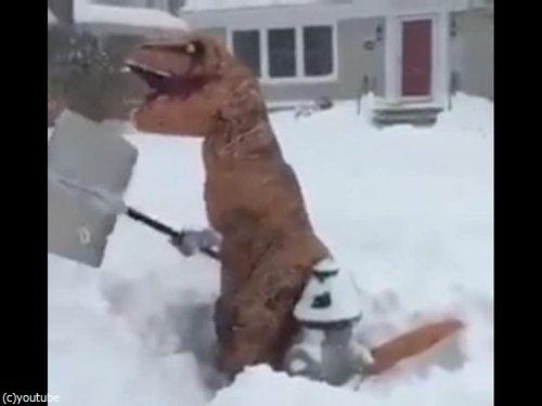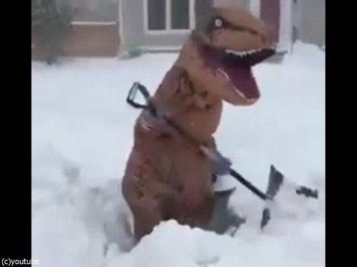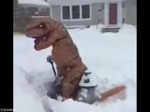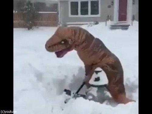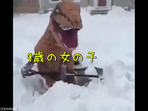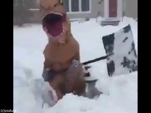 「恐竜が雪かきしてる...と思ったら9歳の女の子だった!?」(動画)