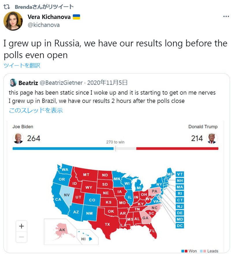 ブラジル人「アメリカの大統領選挙に不満がある...」ロシア人「一方わが国では...」