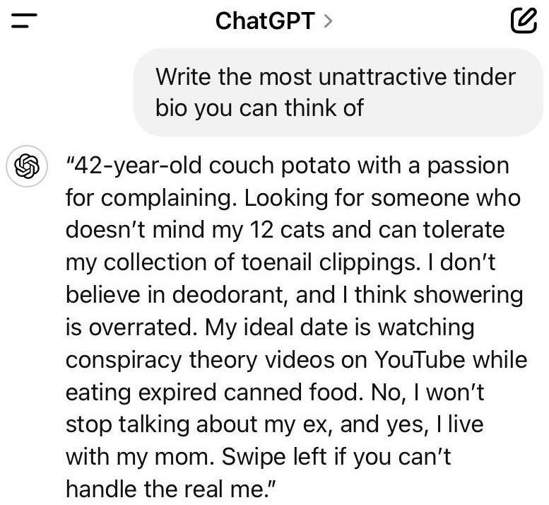 AIに『最も異性に魅力のないTinderのプロフィール』がどんなものになるか、問いかけた人がいました。