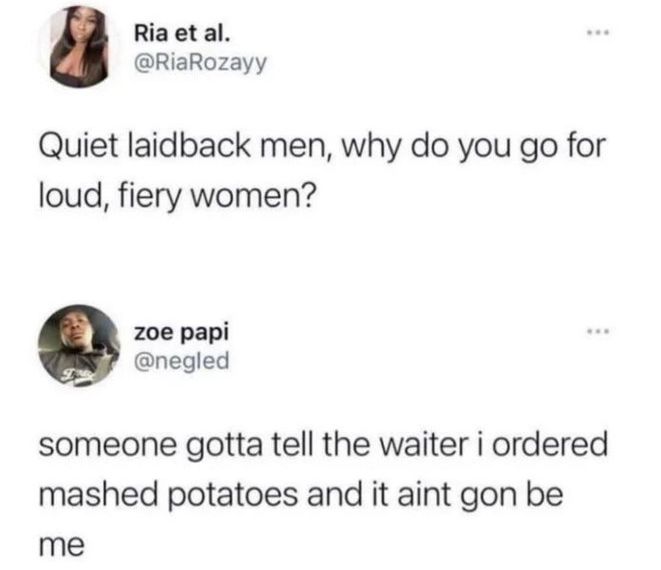 「おとなしく落ち着いた男性たちよ、なぜ騒がしい情熱的な女性を選ぶの?」