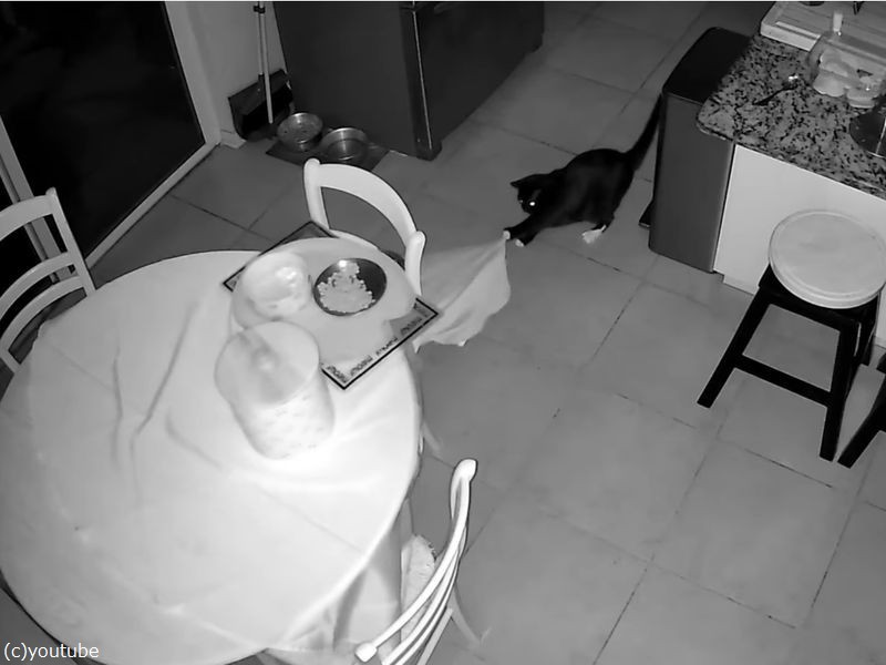 猫が人知れず「テーブルクロス引き」をした結果、やはり...(動画)