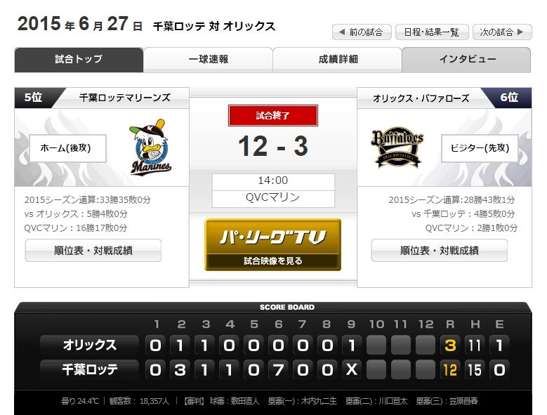 【6月27日】ロッテ12-3オリックス 防御率1位のディクソンを攻略!1ヶ月ぶりの二桁得点で大勝! 2015年06月27日 カテゴリ:千葉ロッテマリーンズ 試合結果 1: 風吹けば名無し@\(^o^)/ 2015年06月27日(土) 17:50:09.94 ID:qEOTEvZbM.net no title no title no title no title no title 【【6月27日】ロッテ12-3オリックス 防御率1位のディクソンを攻略!1ヶ月ぶりの二桁得点で大勝!】の続きを読む タグ :#ロッテ #オリックス #試合結果