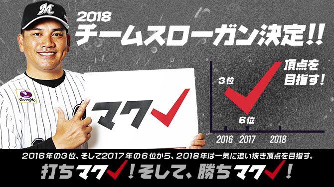 【千葉ロッテの来期スローガン、「マクレ」に決定!】の続きを読む千葉ロッテマリーンズの2018年度チームスローガンが『マクレ』に決定しましたのでお知らせします。https://t.co/e1zXFSANdL #chibalotte #マクレ pic.twitter.com/QJzDiMaTkv