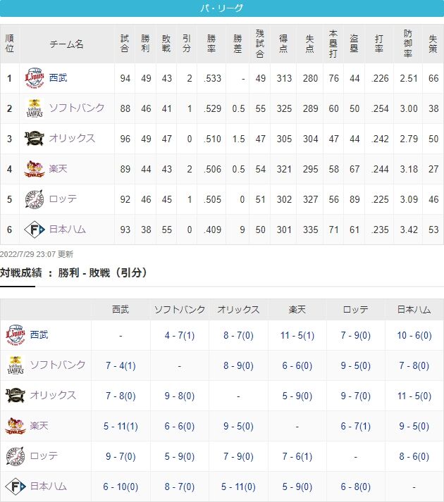 【注】千葉ロッテマリーンズの坂本光士郎選手は代替指名選手。佐藤都志也選手は特例2022により、登録抹消後10日間を経ずに復帰。西巻賢二選手は出場選手登録抹消となりますが、特例2022の適用により、10日間を経ずに再登録可能です。