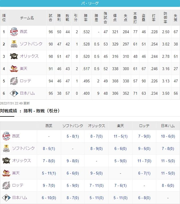 パ・リーグ順位表(7月31日)ロッテ4連敗で借金突入、上位4球団1.5G差の超大混戦 2022年08月01日 カテゴリ:パ・リーグ 順位(予想) bandicam 2022年07月31日 20-21-17-701 4: それでも動く名無し 2022年07月31日(日) 22:22:41.05 ID:k8nmFYj80 ひいい なんだこのゲーム差 WS001924 FullSizeRender 【パ・リーグ順位表(7月31日)ロッテ4連敗で借金突入、上位4球団1.5G差の超大混戦】の続きを読む タグ :#パ・リーグ #順位表