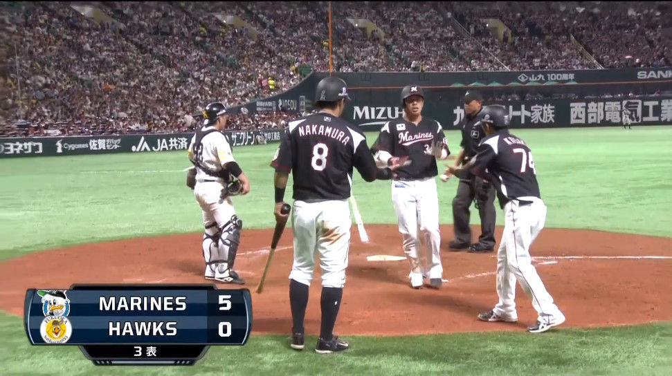 GIF画像 角中第3号2ランホームラン!!ロッテ序盤で早くも5得点!!