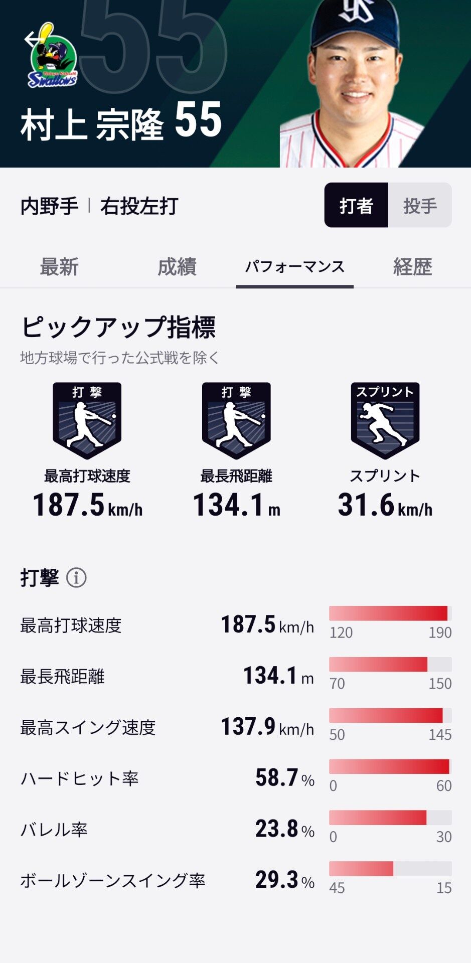 8 名無し、心つなげよう 2025年10月22日 11:55 id:vUcZcYdT0スイングスピードの平均とかも知りたいな、安田ドン詰まりのイメージもあるし。