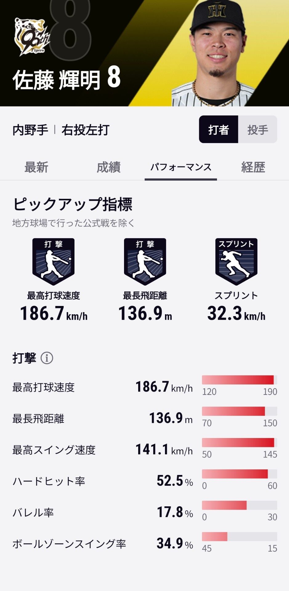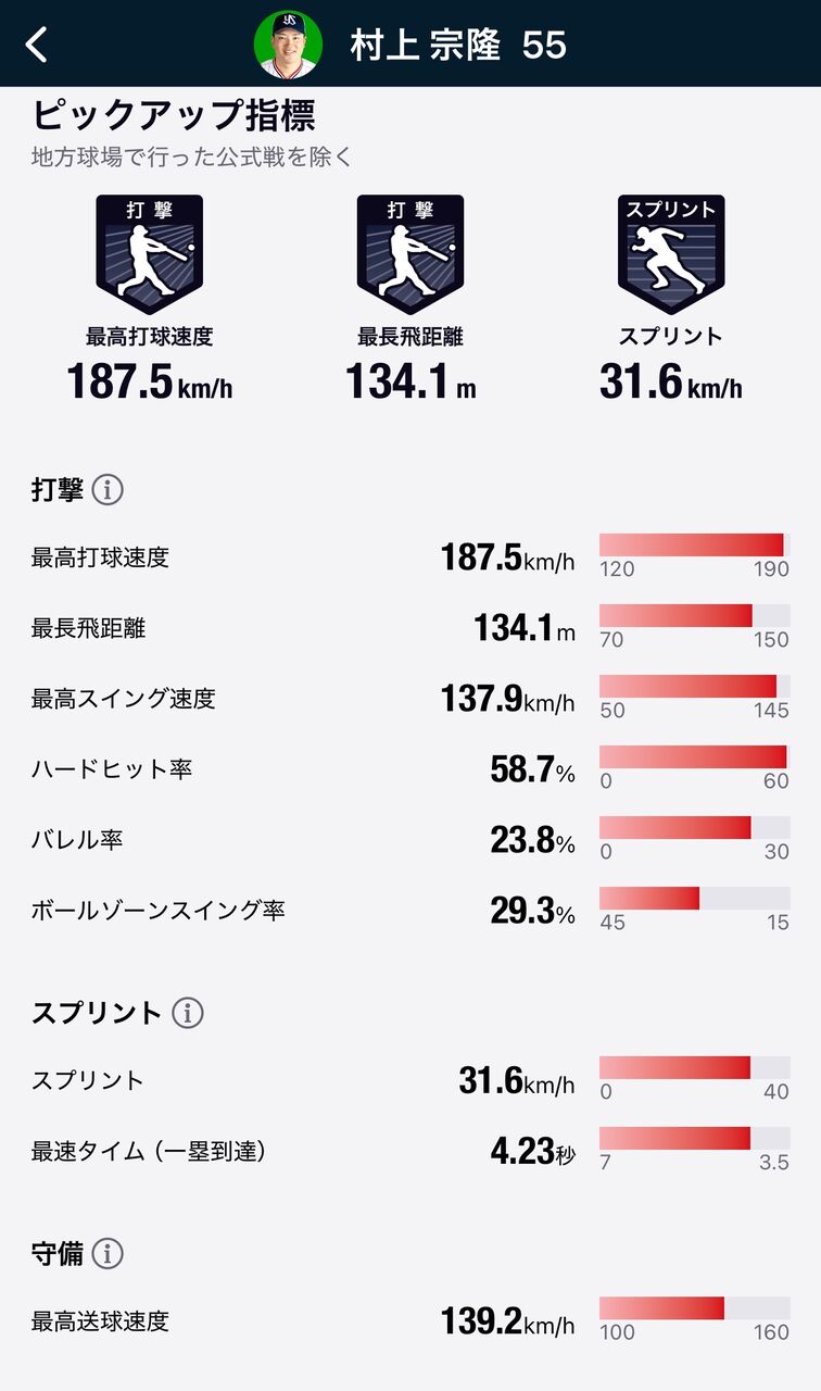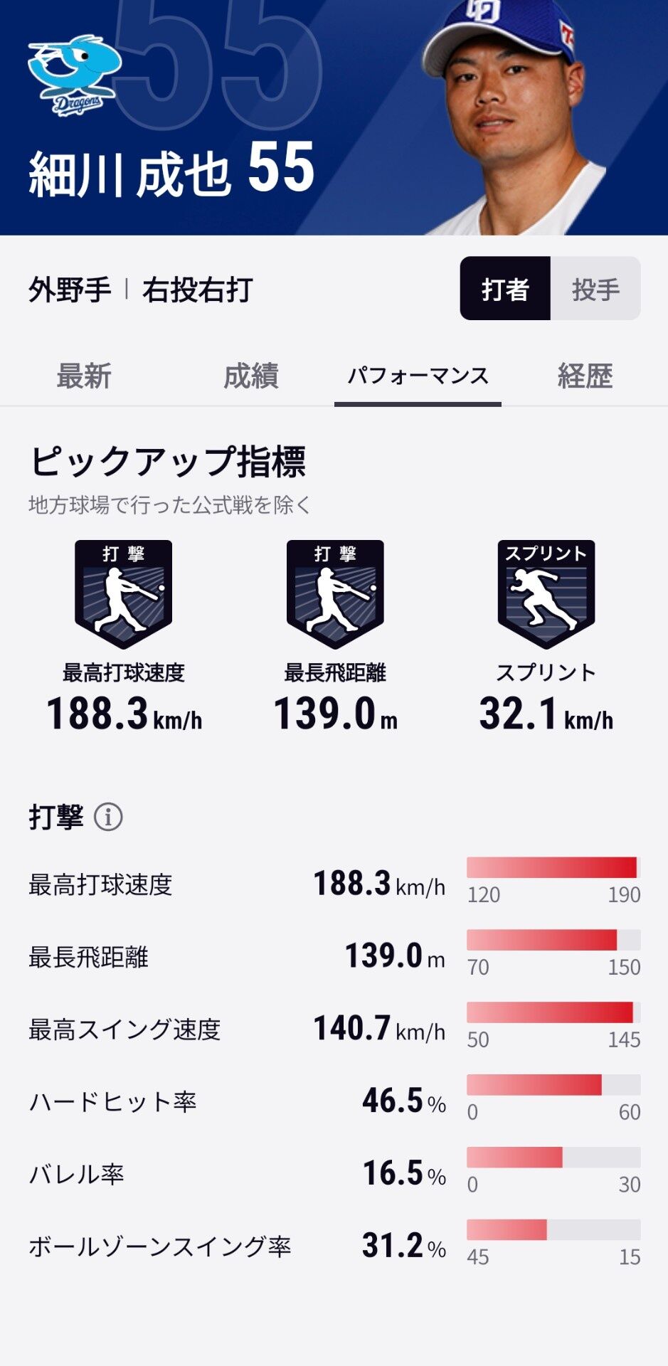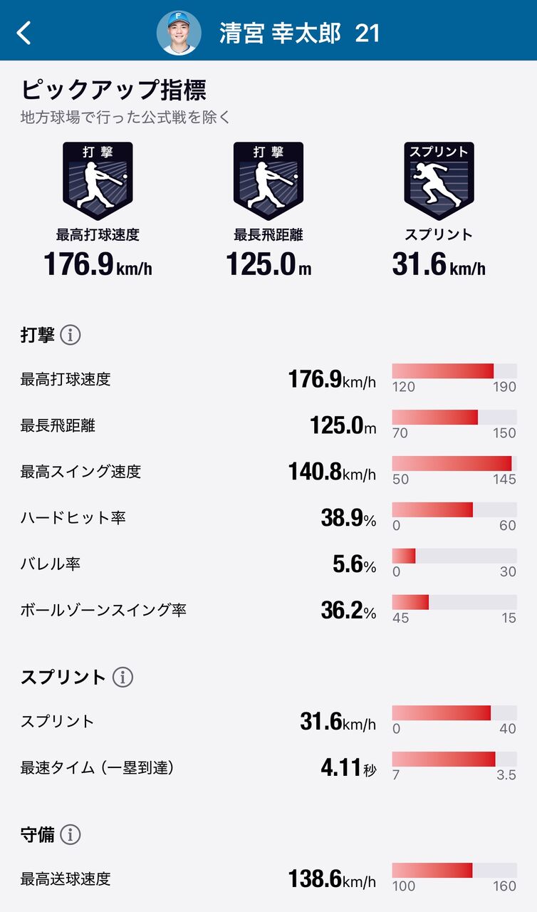 7 名無し、心つなげよう 2025年10月22日 11:54 id:xVmEbARU0安田のバレル率低いのは平均打球速度が低いからやろ