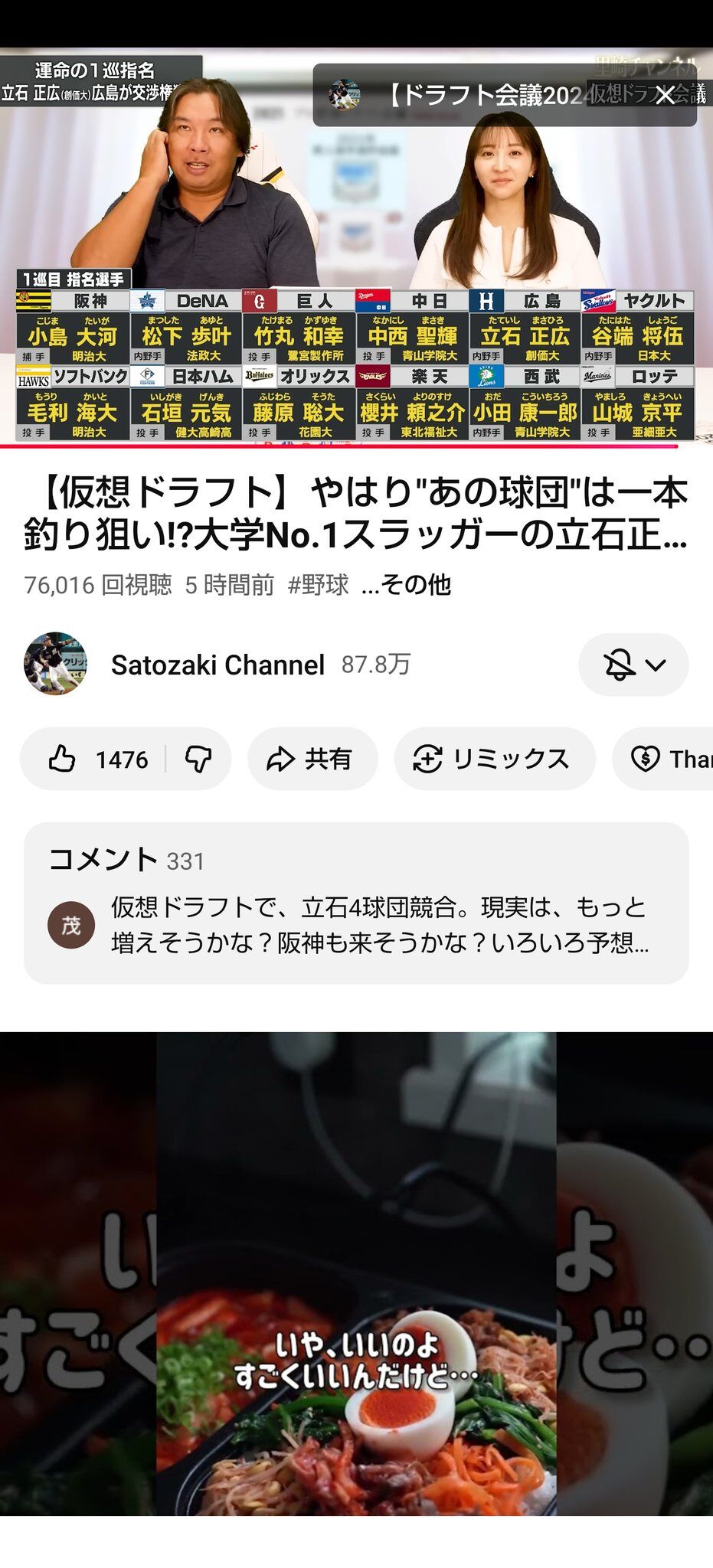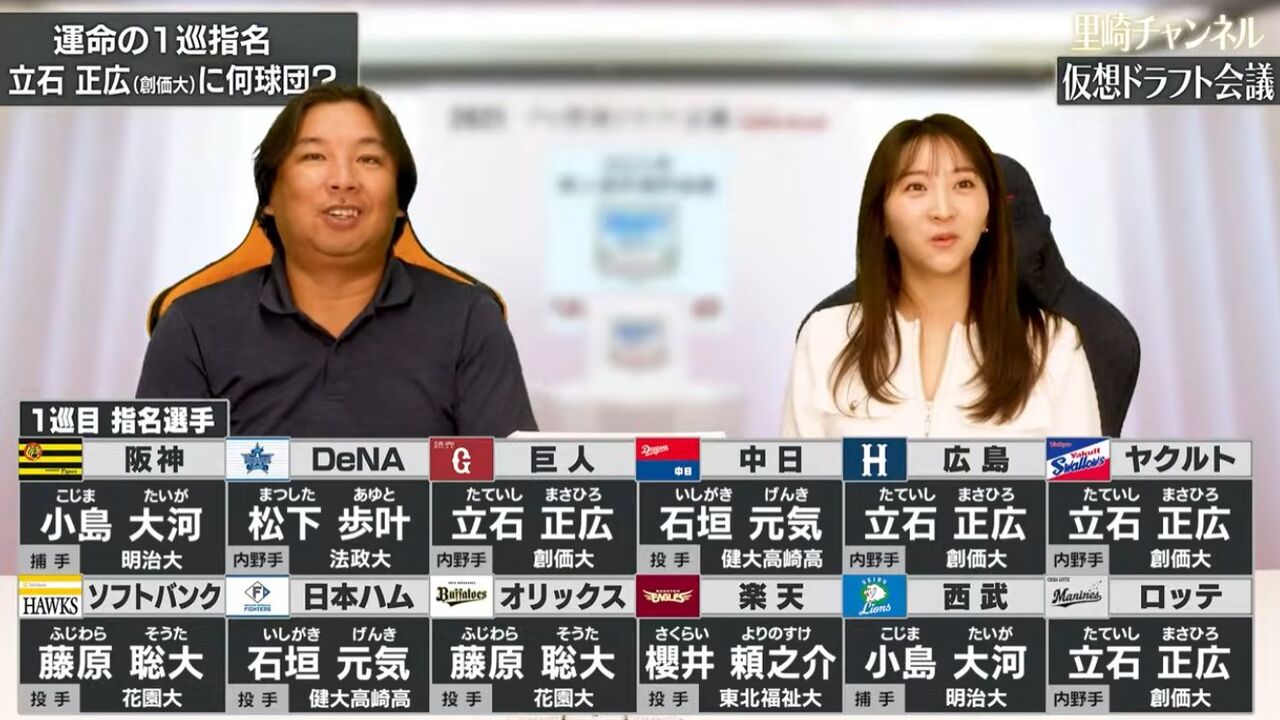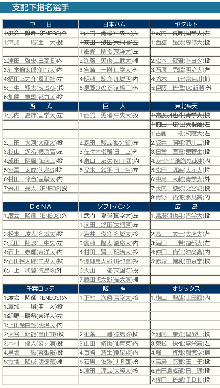 午後1時から約6時間かけて94選手の映像を確認した指揮官は「何も決まらずで。ただ、1番最初(1位指名)は7人ぐらいに絞れたかなっていう程度で」と話した。