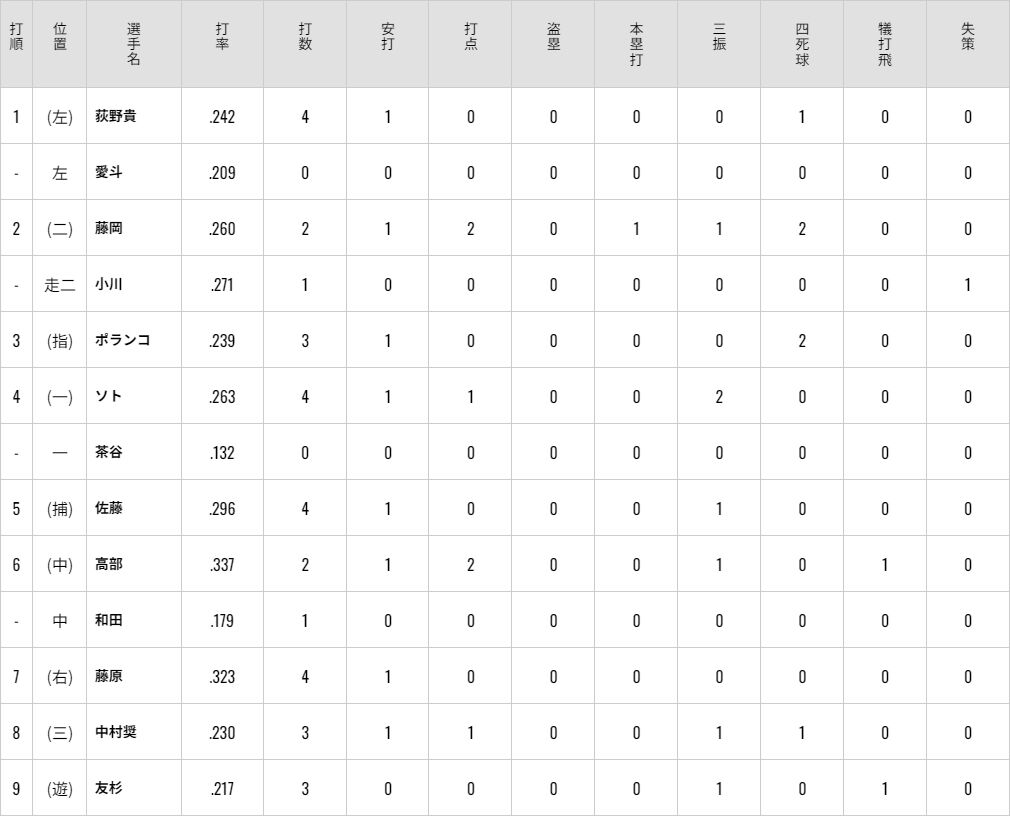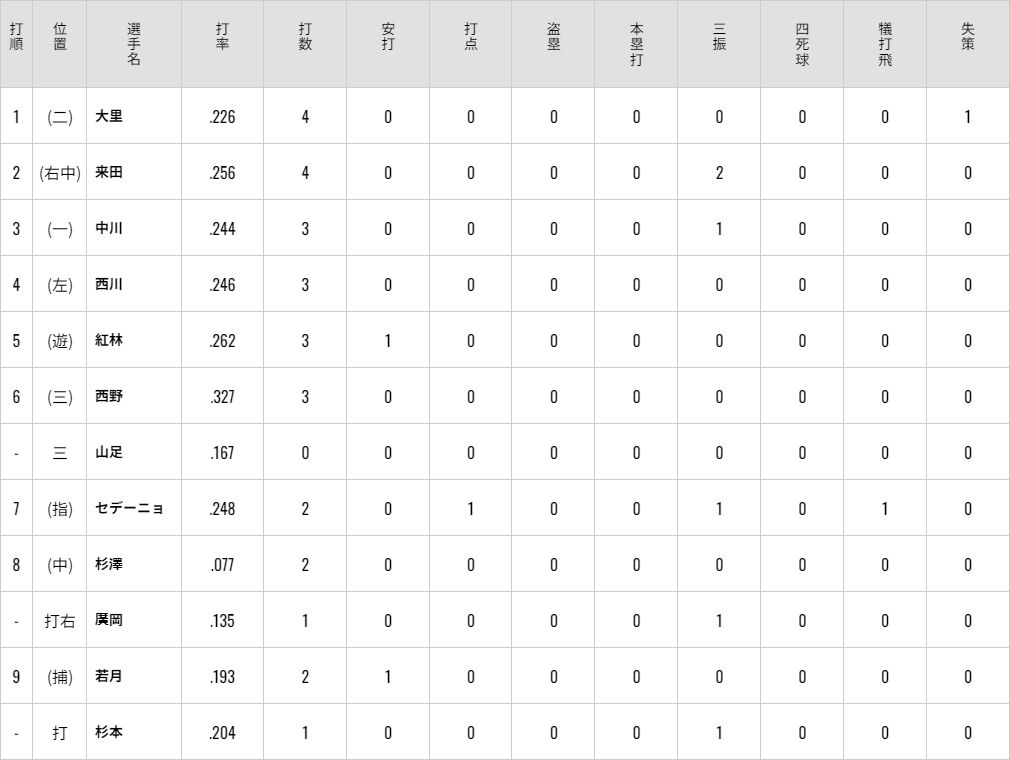 福岡 2008年9月20日(和田毅)10回自責1(負け)
