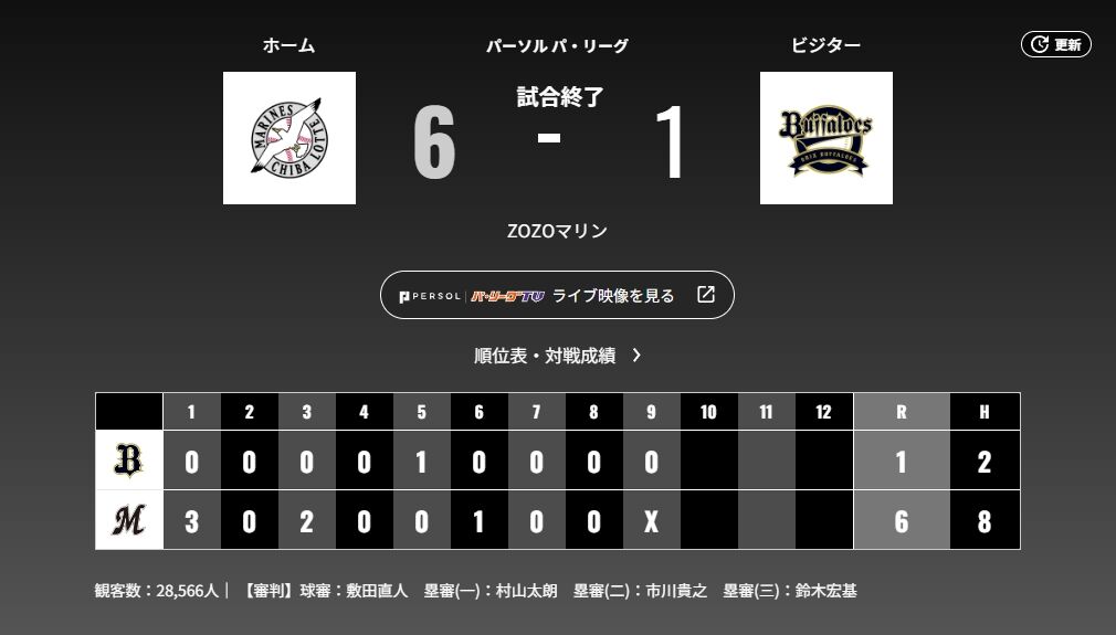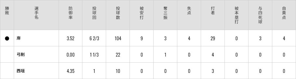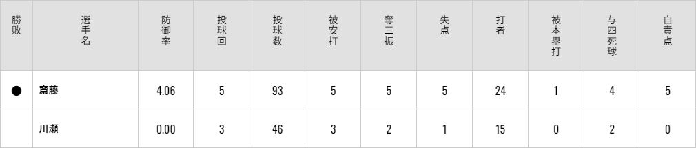 西武 2006年7月8日(松坂大輔)10回自責(勝ち)