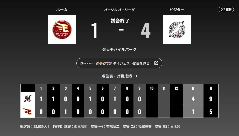 近鉄 2004年5月2日(川尻哲郎)10回自責2(勝ち)