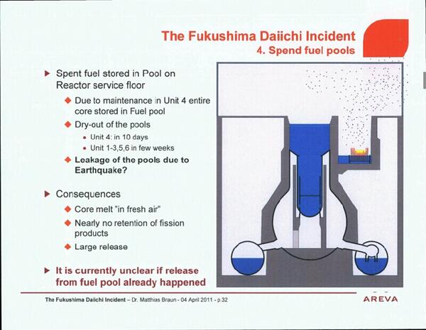 Jim Lyons of IAEA stated their top concern was the spent fuel pools "due to their being a direct path for radiological release"
