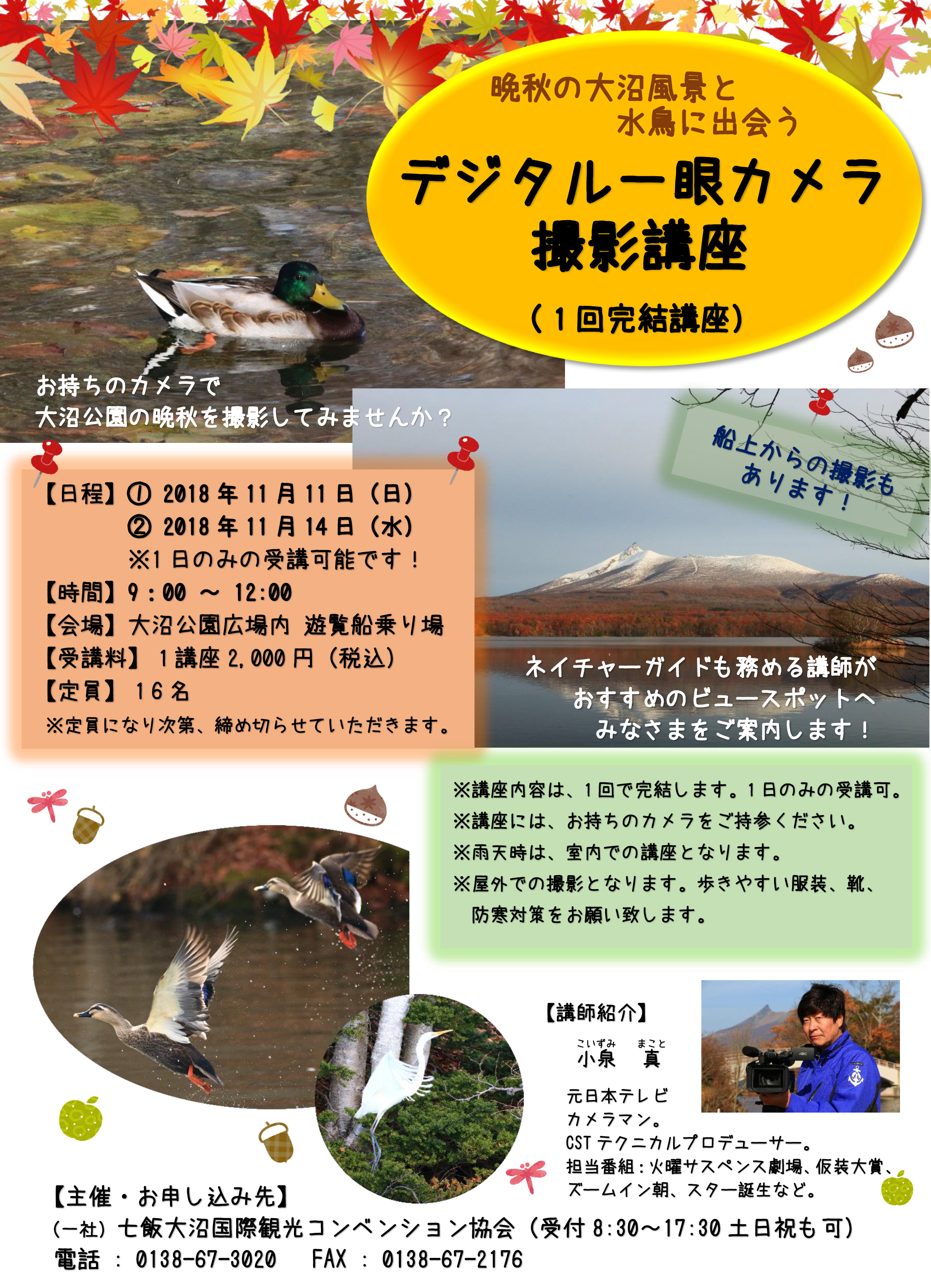 ご予約・お問合せは、「大沼国際交流プラザ」TEL:0138-67-2170