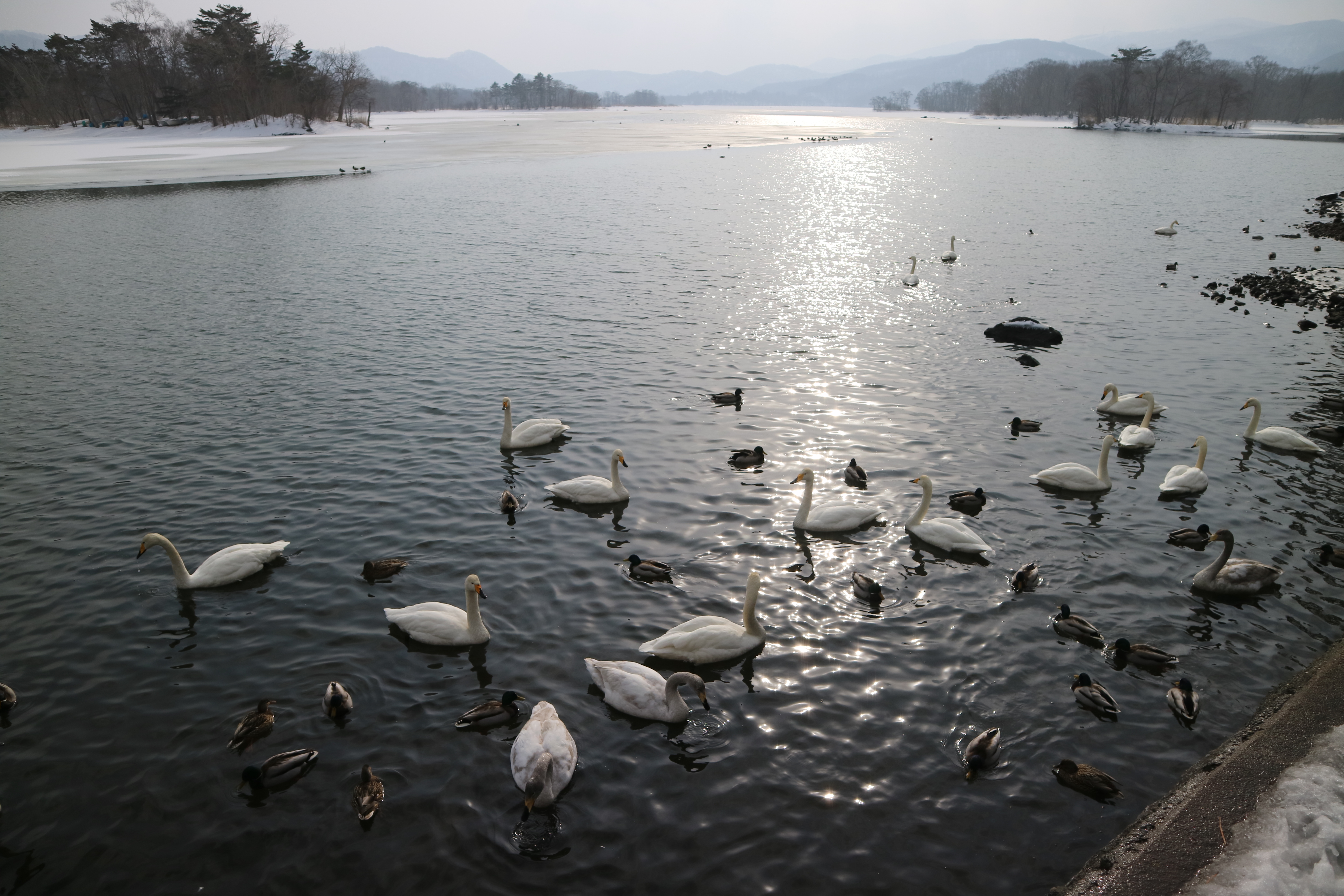 湖の周囲をドライブすると、白鳥の姿を見られるかもしれません。