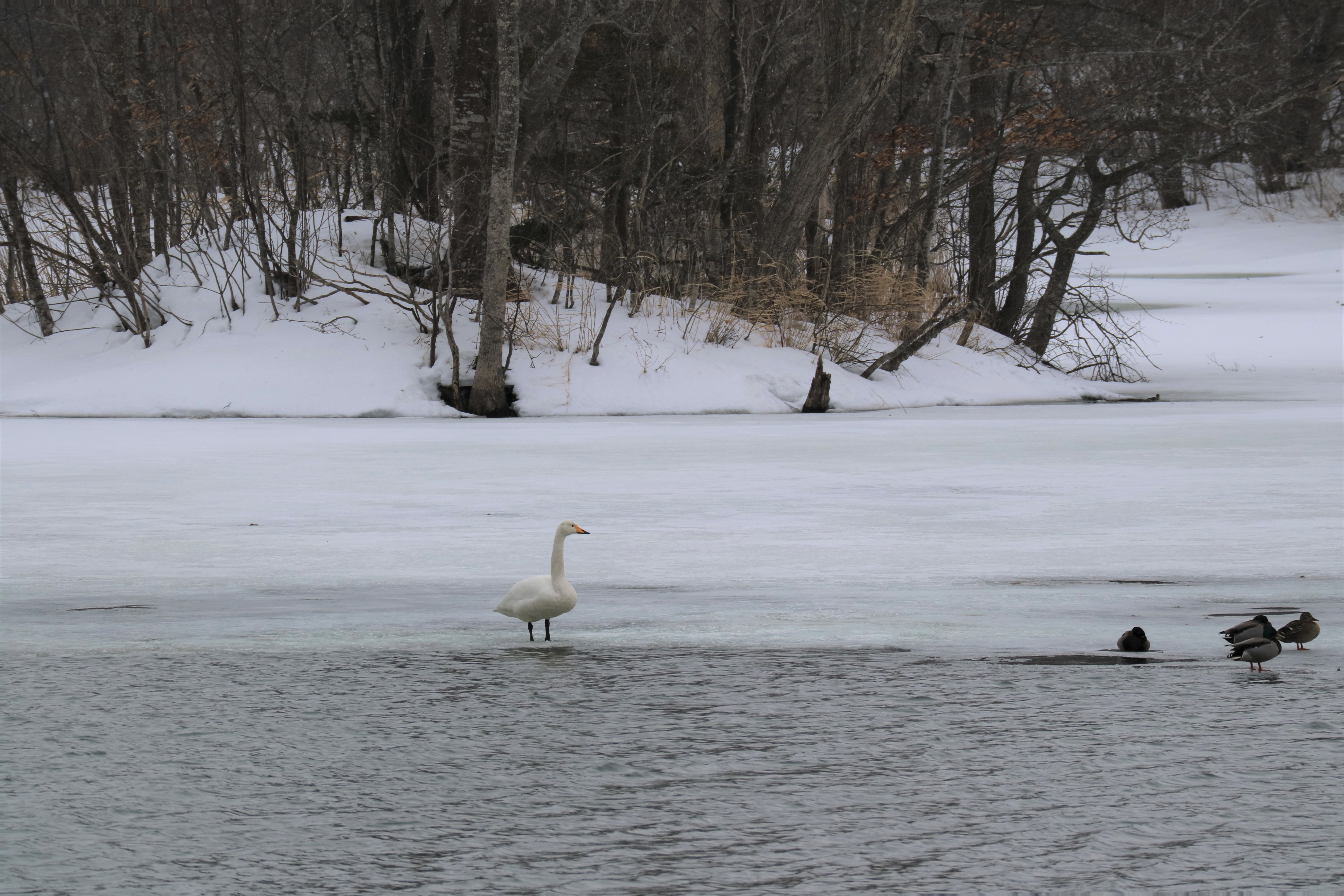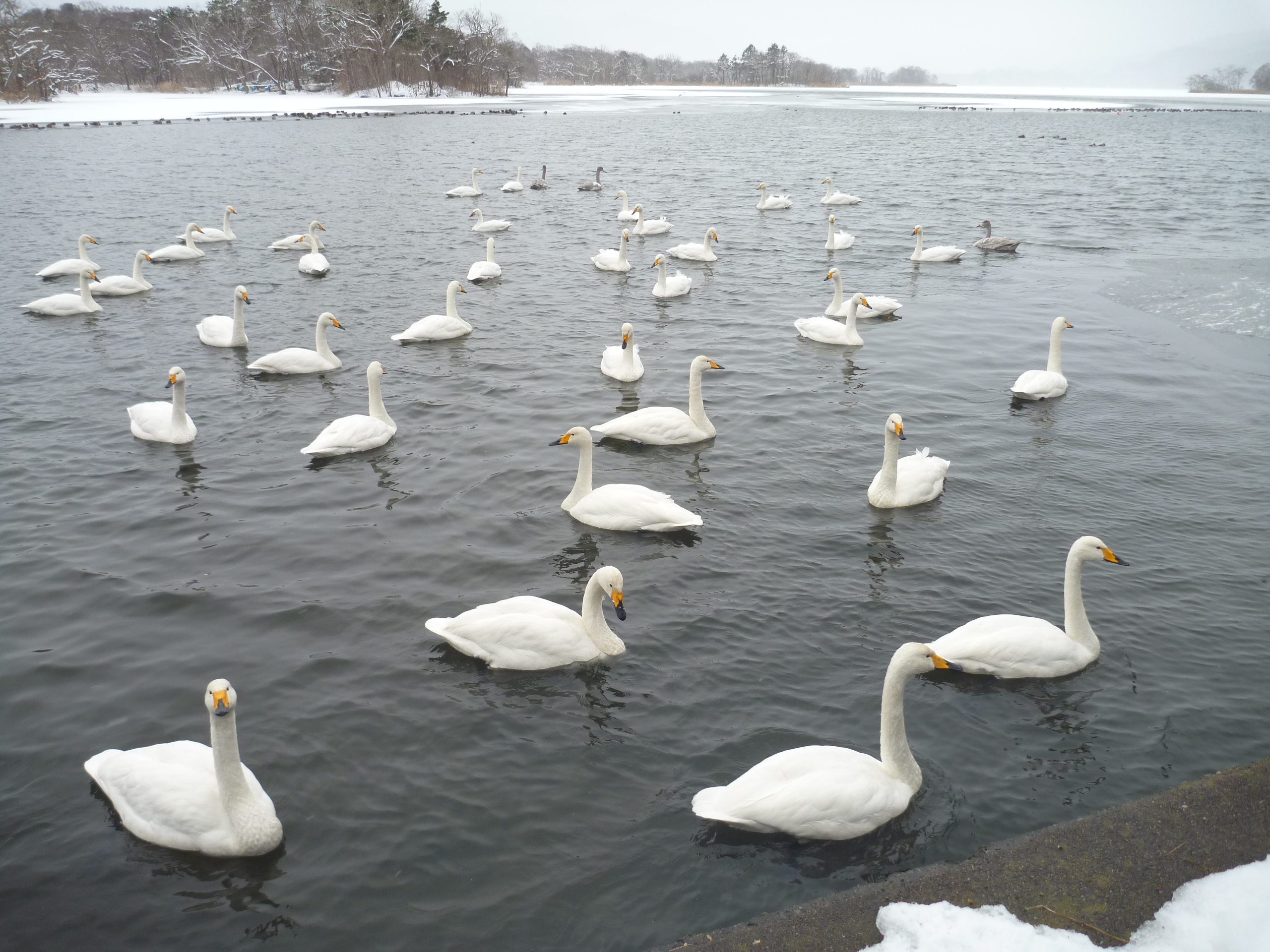 大沼公園にも、オオハクチョウの姿が見られる季節となりました。