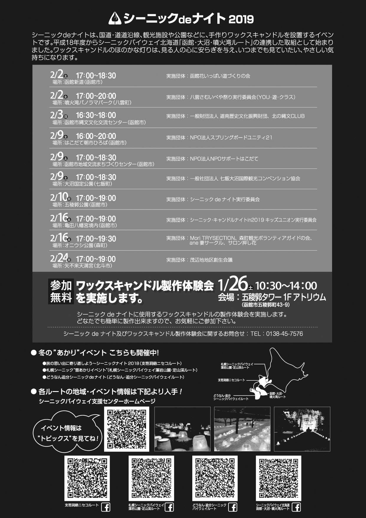 函館市内や八雲町、森町、北斗市にて開催されますので、