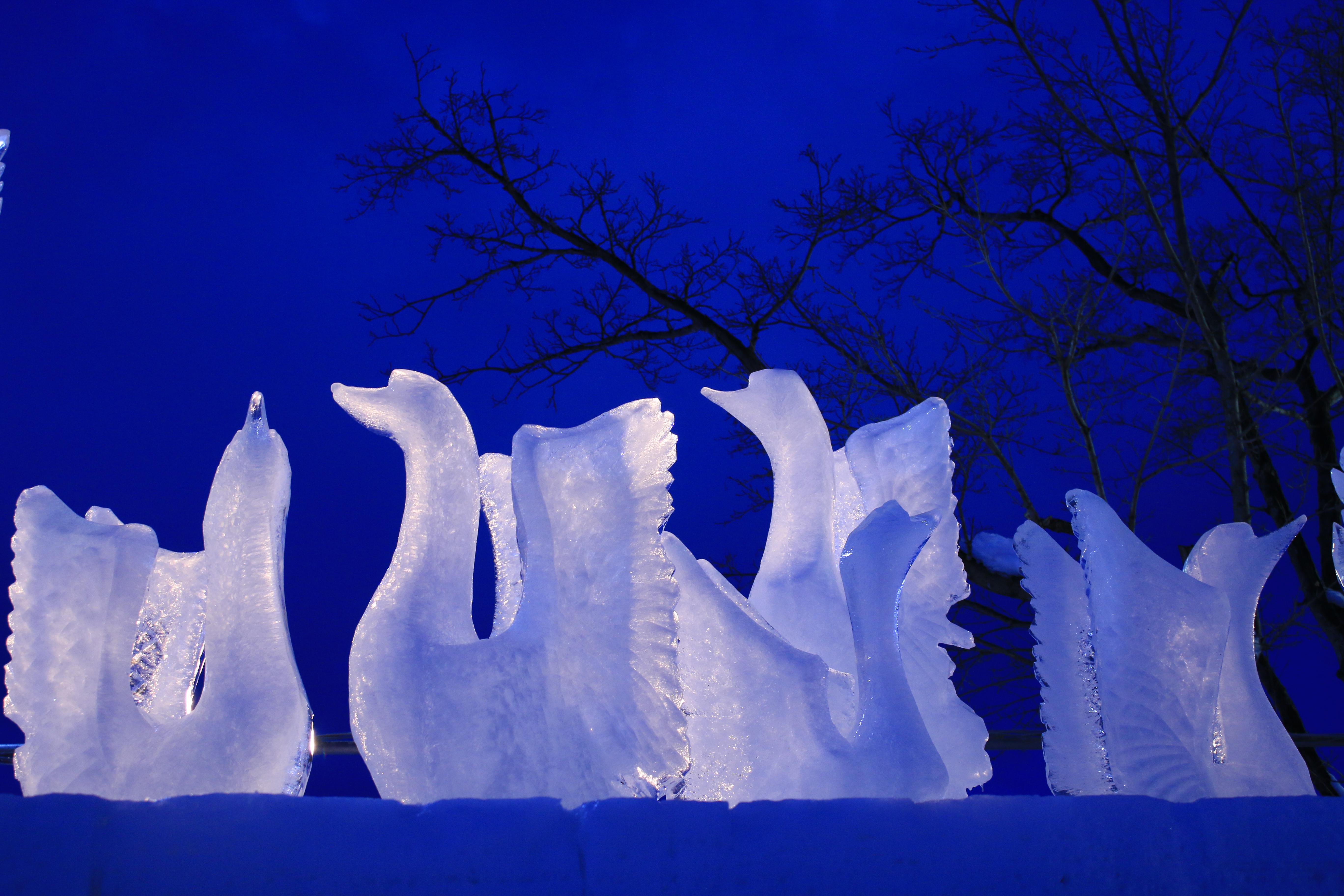 函館アイスカービングクラブの皆さんによる氷のアート作品です。