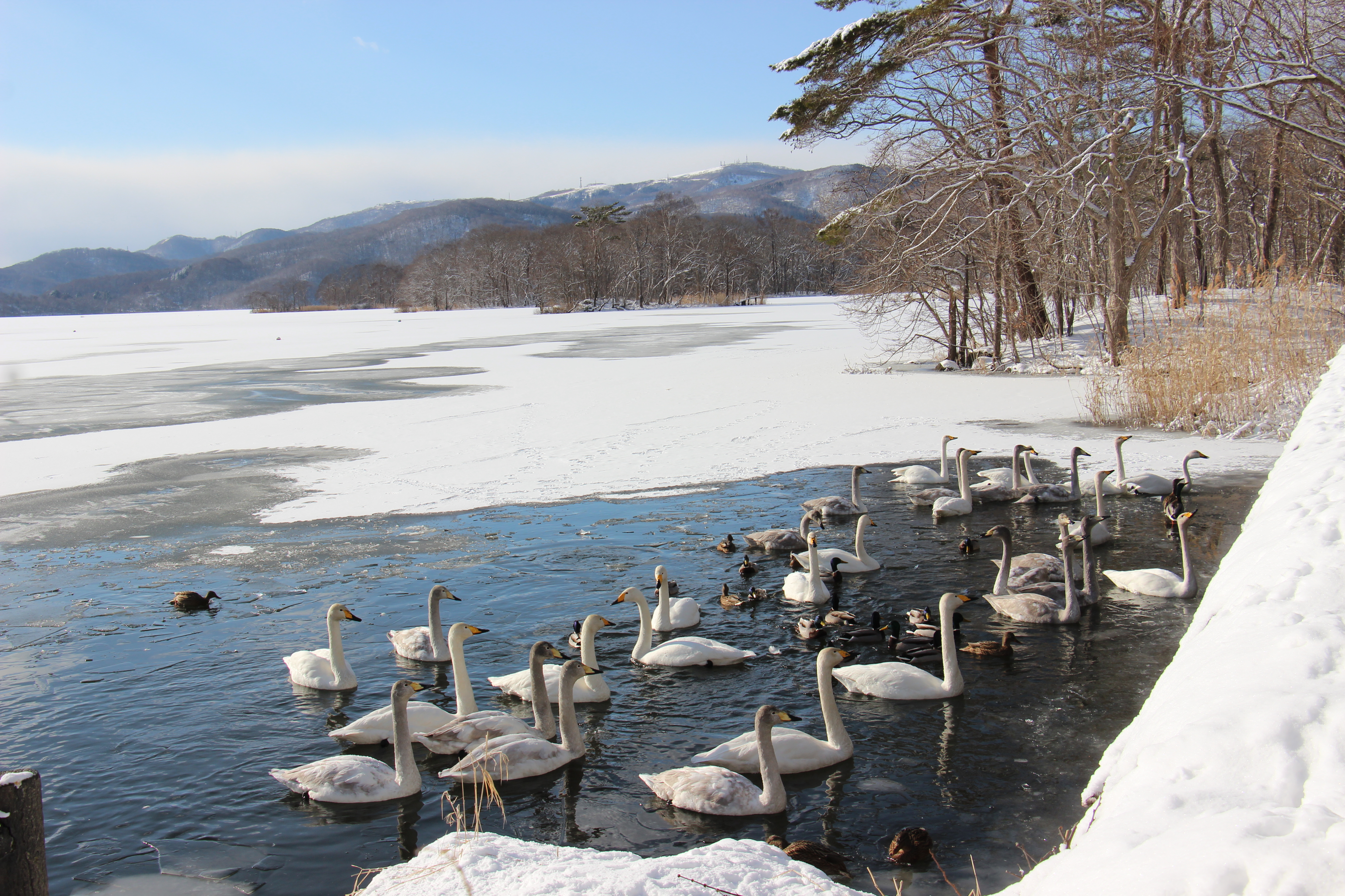 シベリアから飛来して大沼で越冬する白鳥たちは、大沼の冬の風物詩です。