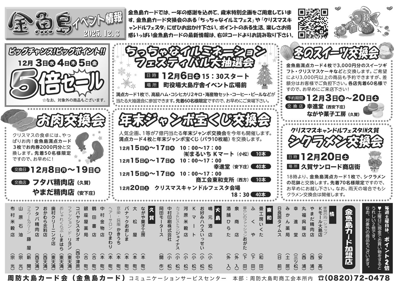 本所・久賀支所 周防大島町久賀4485 TEL 79-0300 FAX 72-2277