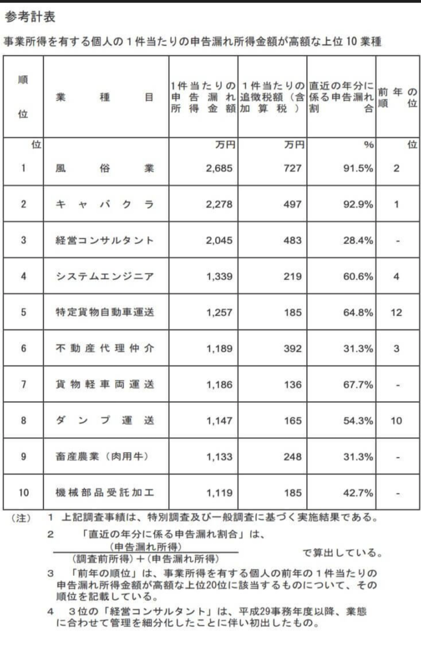 一件あたりの増差や追徴額やから脱税者の数のランキングではないぞ