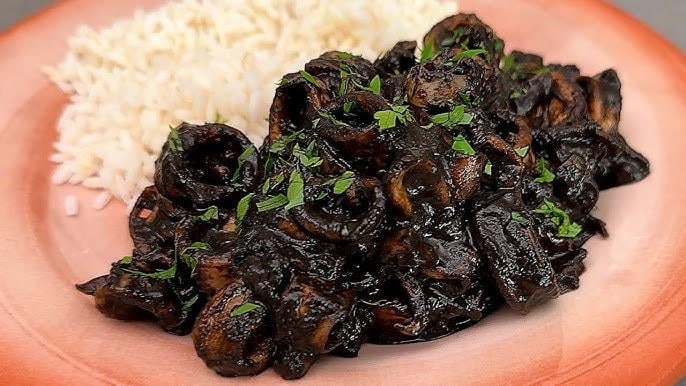 イカスミで調理したイカ、普通はライスと一緒に食べる