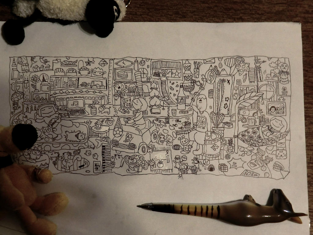 娘(小3)の絵。 A4コピー用紙にボールペン。この能力をどの方向に延ばしてやればいいのか。。。