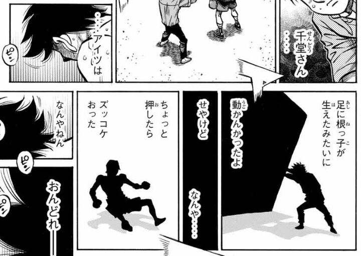 押したら倒れるからいけるやん!ってなあ、千堂のキャラブレすぎ