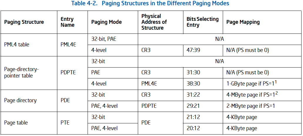- Bits 21:12 of the linear address select an entry in the guest page table located at the guest-physical address in the guest PDE. The guest-physical address of the guest page-table entry (PTE) is translated through EPT to determine the guest PTE’s physical address.