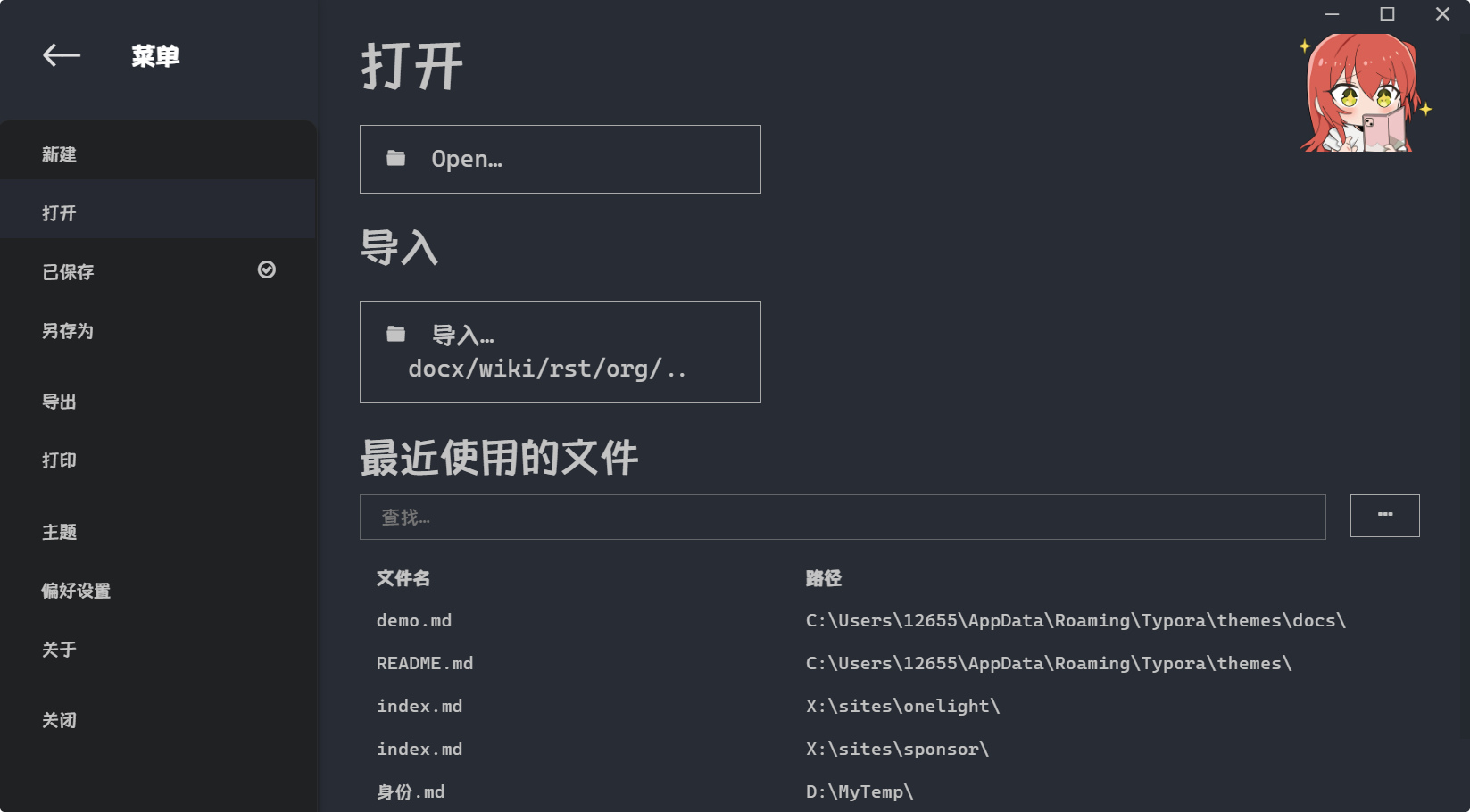 - 在typora中选择 文件 → 偏好设置 → 外观 → 打开主题文件夹