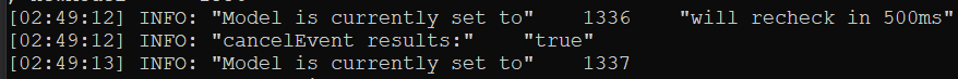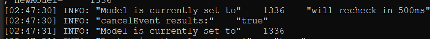 addCommandHandler("oect", function() local o = createObject(1337, 0, 0, 0) iprint("Created object at model 1337", inspect(o), "now adding event, and changing model") local event function event(oldModel, newModel) iprint("onElementModelChange received for source", inspect(source), ", oldModel=", oldModel, ", newModel=", newModel) iprint("Model is currently set to", getElementModel(o), "will recheck in 500ms") iprint("cancelEvent results:", inspect(cancelEvent())) setTimer(function() iprint("Model is currently set to", getElementModel(o)) iprint("Destroying the element now!", inspect(destroyElement(o))) end, 500, 1) end addEventHandler("onElementModelChange", o, event) setElementModel(o, 1336) end)