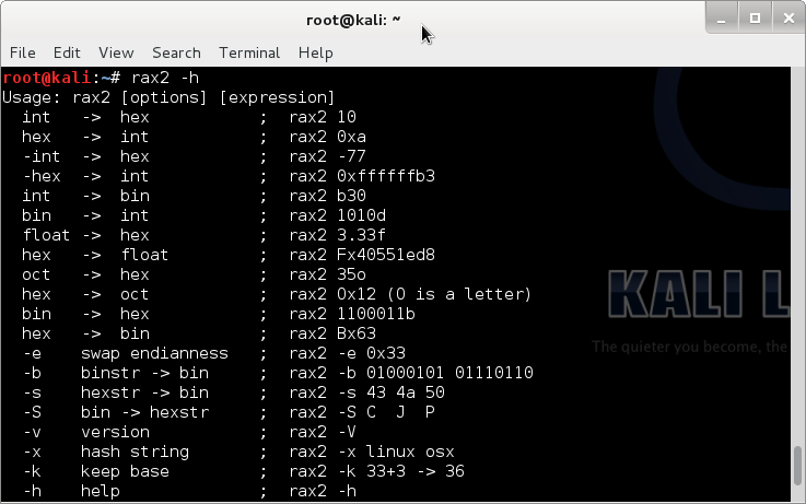 Um aspecto interessante do Radare2 é que as iniciais dos comando variam de acordo com a finalidade da aplicação. Por exemplo: o comando radare é o comando primário, que permite abrir qualquer tipo de arquivo em qualquer fonte, entre muitas outras funções mais avançadas. Já o comando rabin extrai informações de arquivos executáveis binários de determinadas funções, como PE, ELF, Java CLASS e MACH-O.