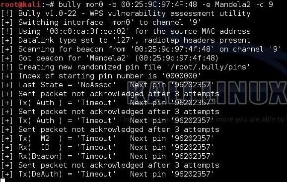 Bully é um programa escrito em linguagem C e serve para implementar ataques WPS de força bruta, reconhecido pelo bom uso dos recursos de memória, da CPU e por oferecer boas opções de menu.