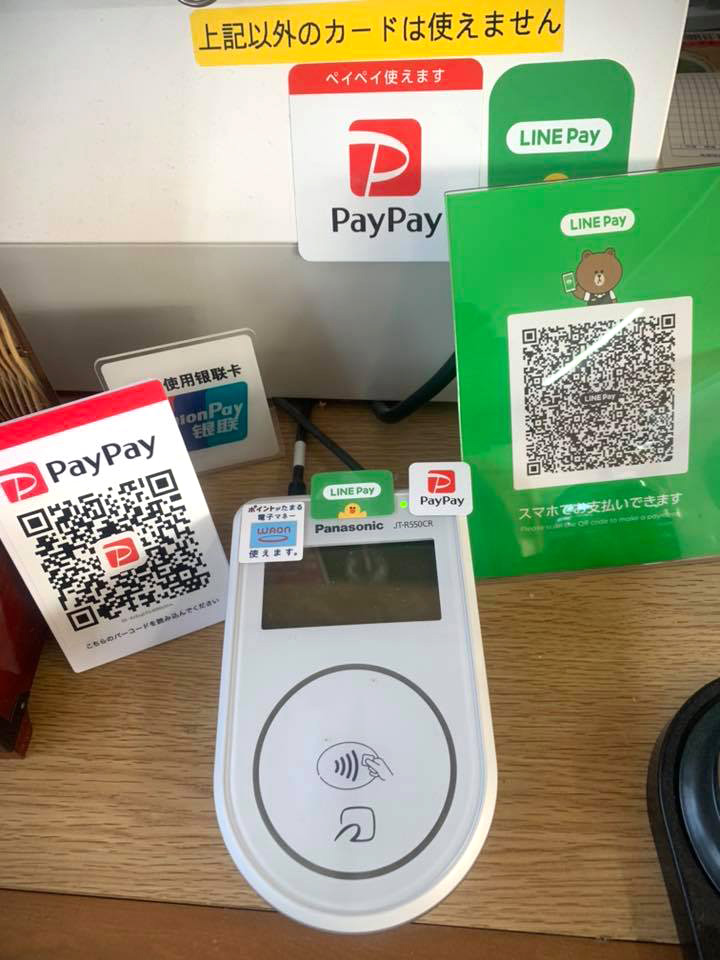 霧立亭の店頭では、お食事のお支払いや商品の購入時にキャッシュレス決済をご利用いただけます。