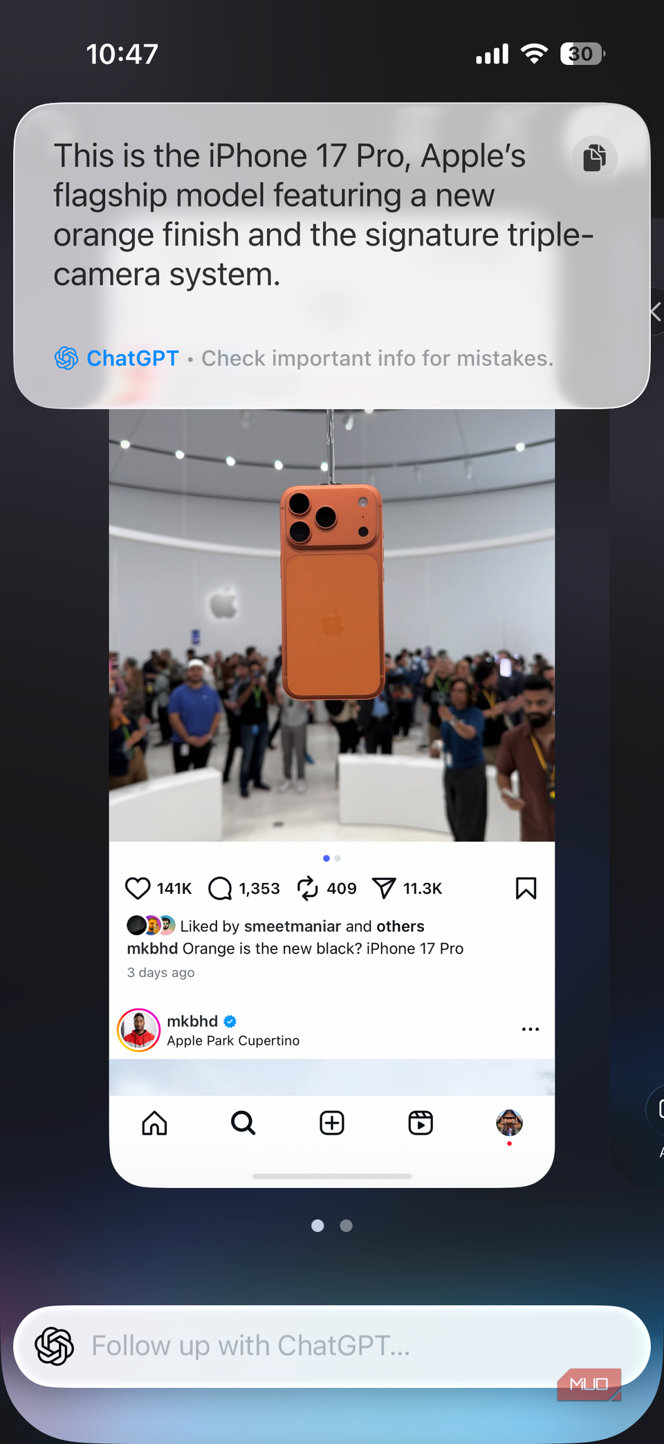 You can ask follow-up questions to ChatGPT or highlight specific areas of the screenshot while doing a web search, so you get answers tailored to exactly what you’re curious about. Visual Intelligence is also context-aware. If your screenshot includes a poster, for instance, your iPhone will recognize dates, and give you the option to add it to the calendar.