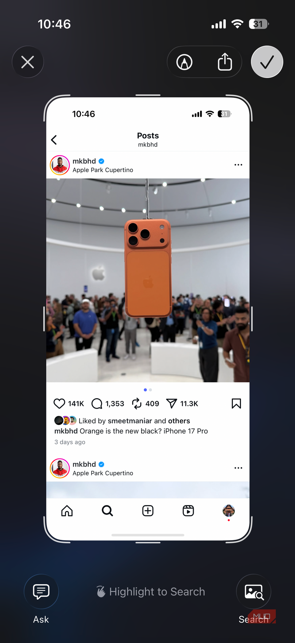 Once you’ve taken the screenshot, iOS 26 gives you two options. Tap the Ask button to send the image to ChatGPT for help, such as getting a quick explanation of a concept or a step-by-step walkthrough. Or tap Search to have your iPhone do a reverse image search.