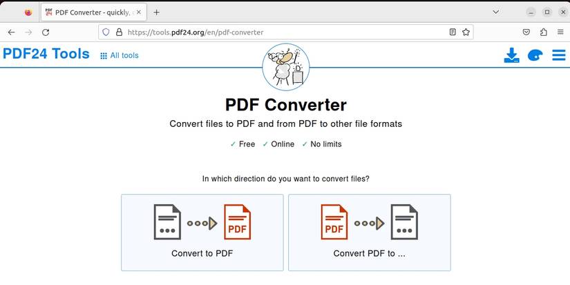 PDF24 is a versatile PDF toolbox for Linux users, which offers a wide range of features, including PDF-to-Word conversion. It has a simple and intuitive interface, allowing you to easily convert PDFs to Word. It also offers the flexibility of online and offline modes, where you can choose between having conversion occur on the PDF24 servers or locally on your systems.