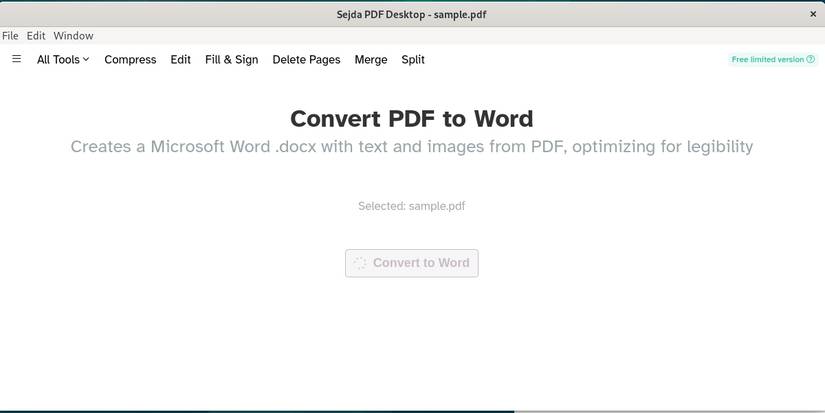 Sejda PDF Desktop is a versatile desktop PDF editing and conversion tool that provides several features for Linux users, including PDF-to-Word conversion. It allows you to edit PDF documents, add annotations, and make other changes.
