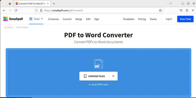 Smallpdf is an online platform that provides a variety of PDF tools, including PDF-to-Word conversion, making it accessible to Linux users through web browsers. Smallpdf operates entirely in your web browser and eliminates the need for software installation on Linux systems.