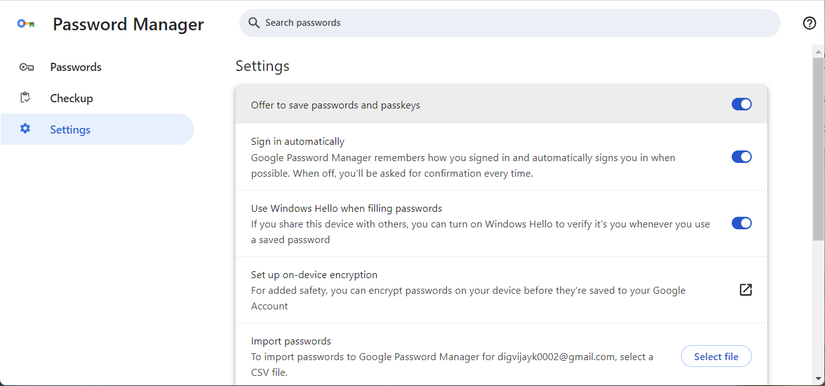 - Go to Settings > Autofill and Passwords > Google Password Manager > Settings.