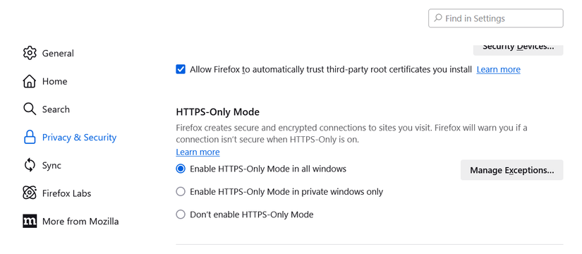 How to Enable "Always Use Secure Connections" in Mozilla Firefox