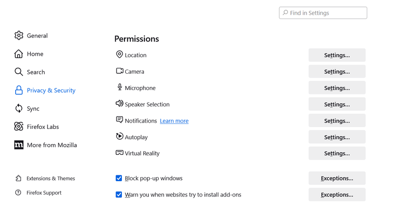 - Scroll to Permissions, and check the box next to Block pop-up windows.