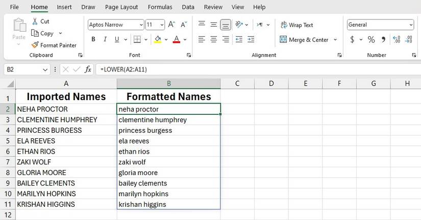 How to Convert Capital Letters to Lowercase in Excel