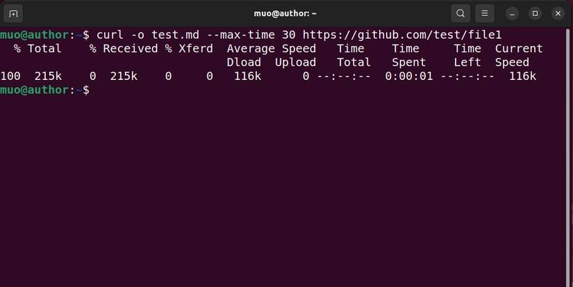 curl -o test.md --max-time 30 https://github.com/test/file1