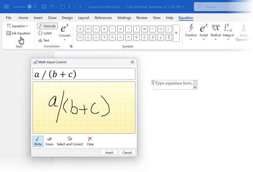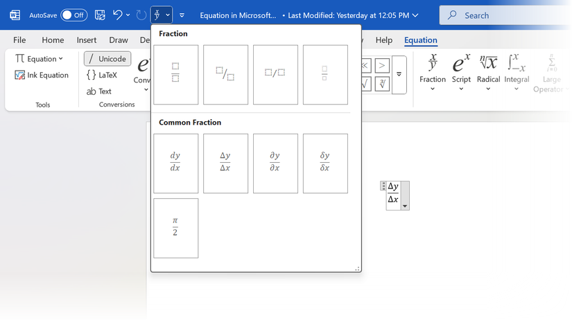 The Equation feature in Microsoft Word is a powerful tool for creating and formatting complex mathematical expressions. Inserting an equation opens an entire toolbar with several options to write and typeset equations how you want them.
