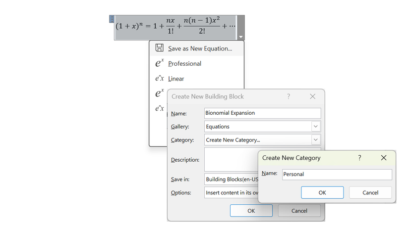 Remember to name and categorize the equation properly so it's easier to retrieve when needed.