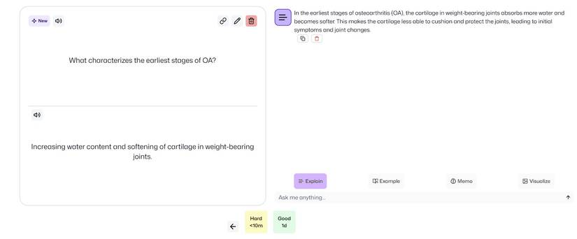 Beyond flashcard creation, FlashKa provides additional AI-driven study tools. I can highlight some text and ask FlashKa to explain it or pose any questions I might have about the material. The answers are prompt, concise, and relevant, making it easier to understand and retain information.